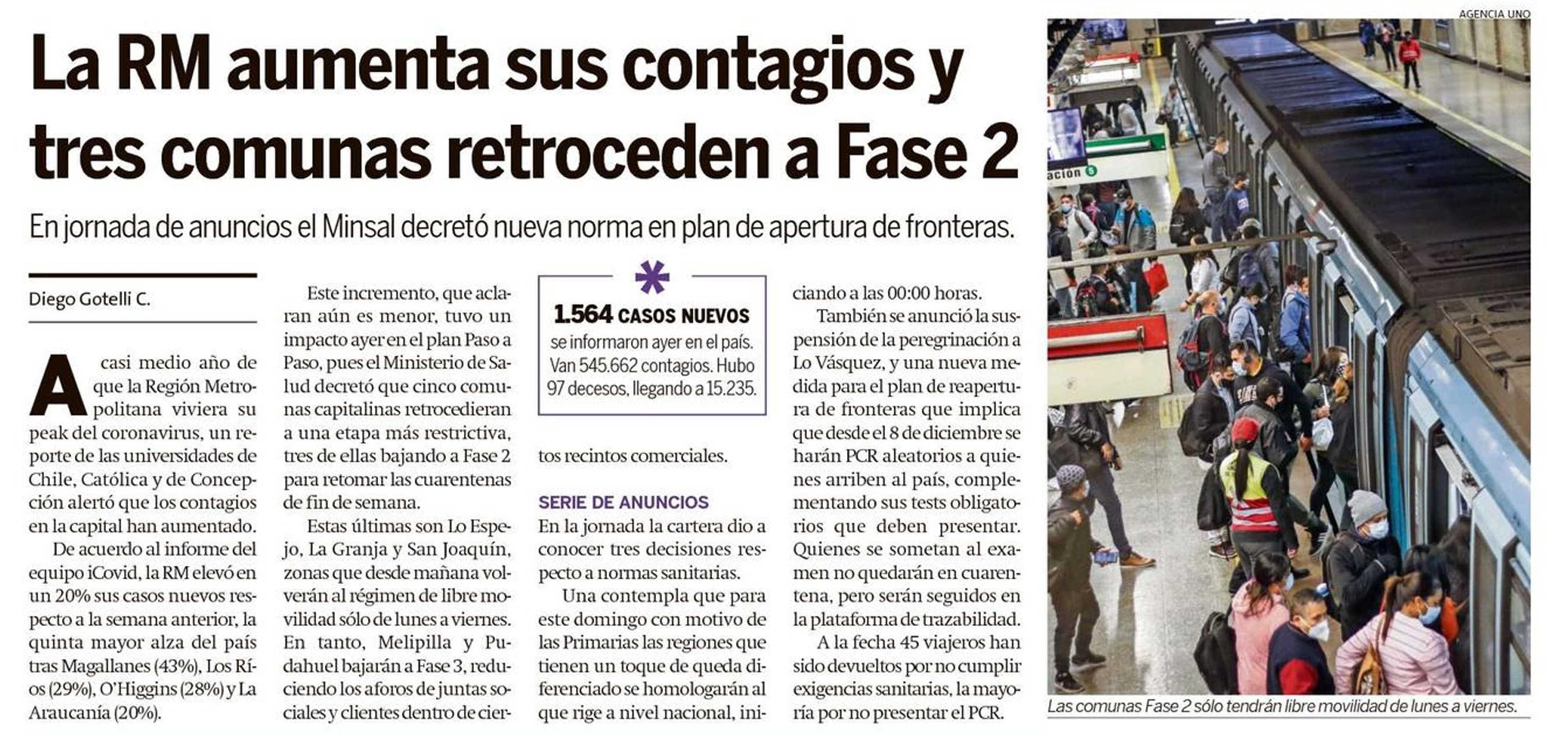 Además, se espera que hoy se anuncien nuevos comunas en fase 2. En metaservicios, empresa de encuestas que contribuye con estudios de mercado, busca encuestadores en terreno freelance para las comunas en transición, que cumplan.